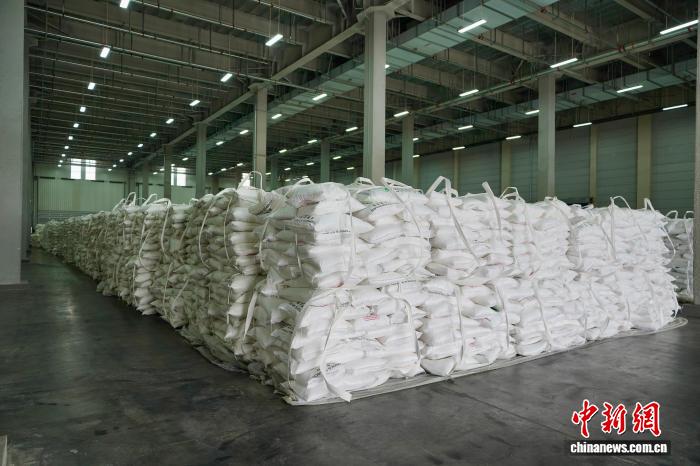 3月28日,郑州东盟木薯淀粉散集中央正在河北郑州航空港区正式掀牌,该散集中央仓储里积达5万仄圆米,后期进入应用里积为2万仄圆米。依靠每个月波动的东盟出口班列,年度进库量可达10万-15万吨。图为堆搁正在堆栈中的木薯淀粉。赵梦阳 摄